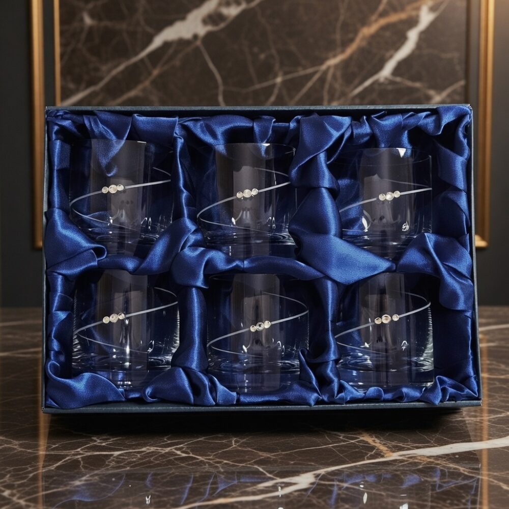 Set od šest čaša sa Swarovski cirkonima u luksuznom maloprodajnom pakovanju.