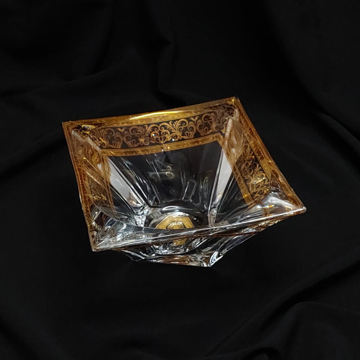 Dodajte sofisticiranu eleganciju svom enterijeru – kristalna činija Quadron Gold 180. Prefinjena činija, izrađena od najkvalitetnijeg češkog kristala, oduševljava svojim jednostavnim, ali izuzetno luksuznim dizajnom. Diskretni, ručno pozlaćeni motiv od 24-karatnog zlata delikatno krasi površinu činije, stvarajući ekskluzivan detalj koji unosi prefinjenu raskoš u svaki prostor.