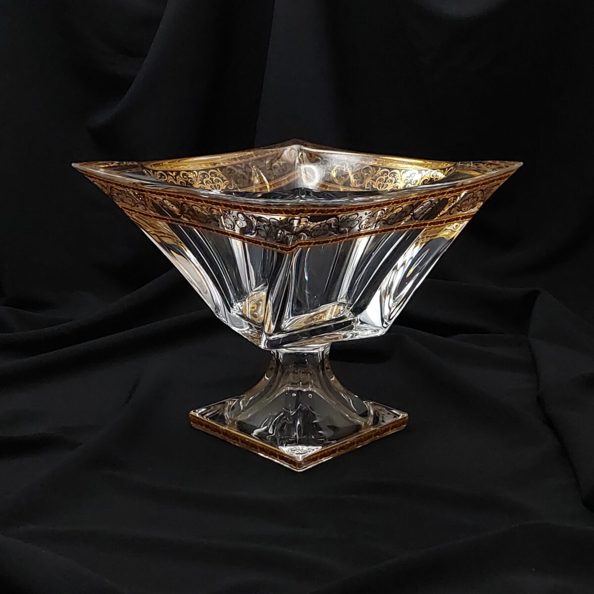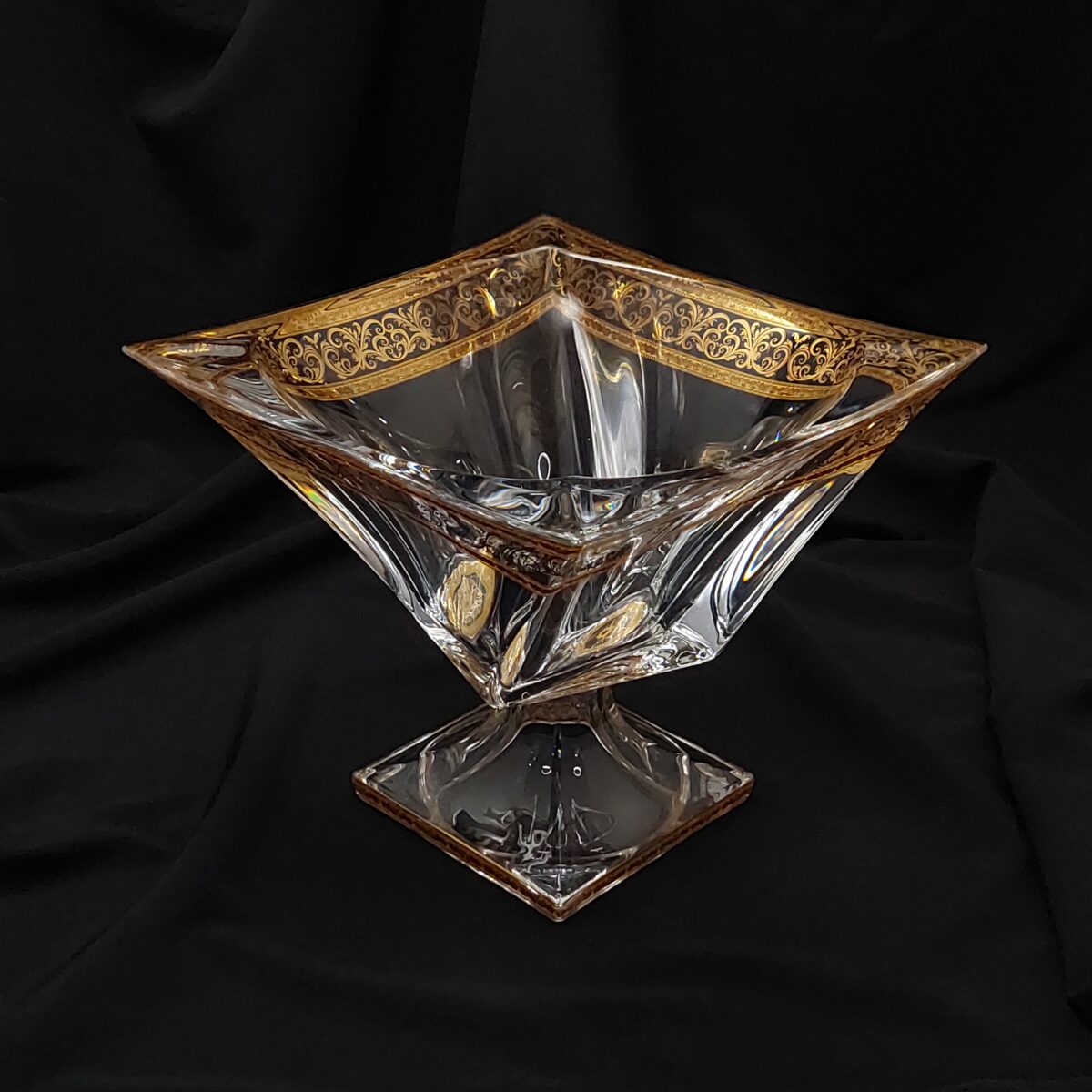 Bohemial kristal činija sa stopom Quadron Gold Square