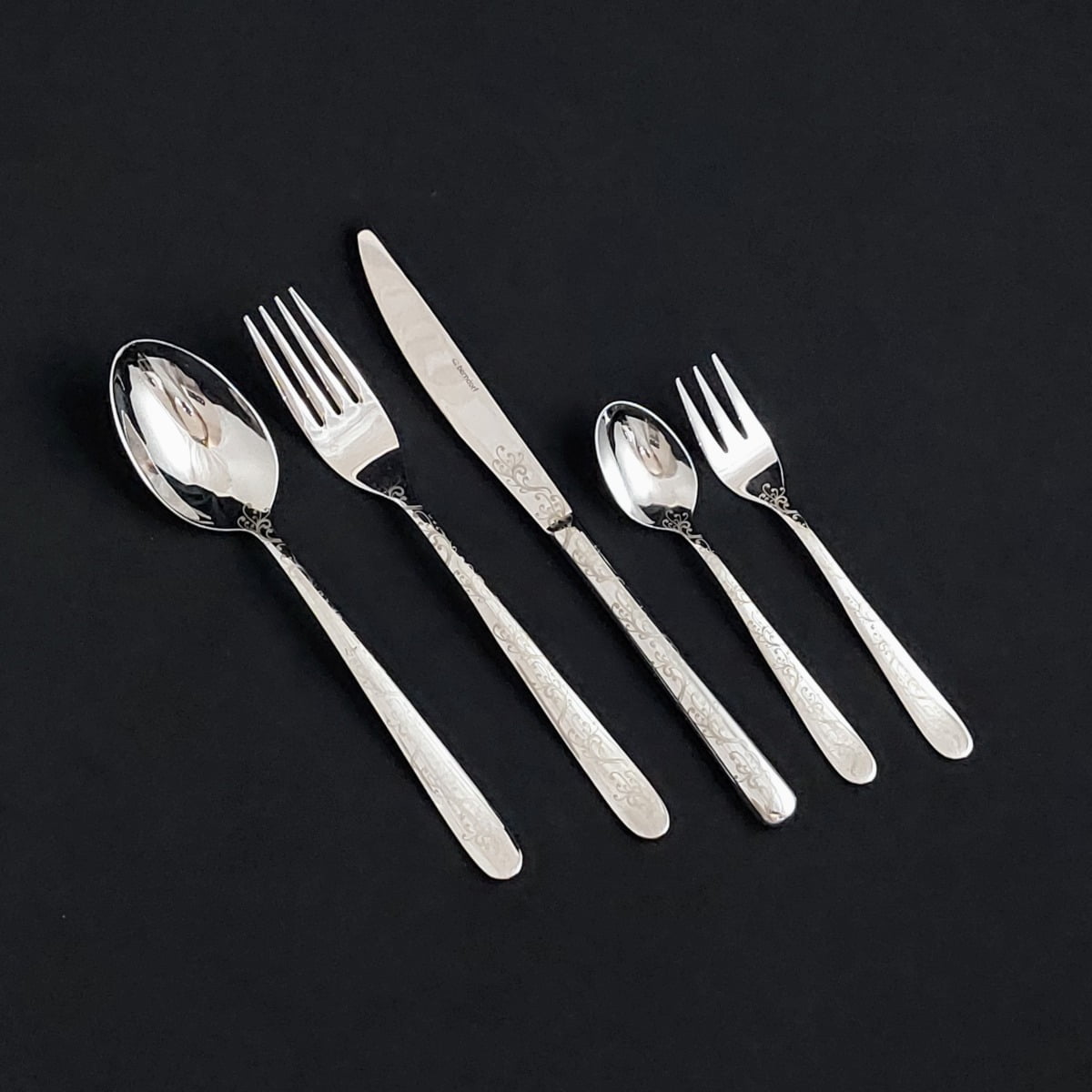 Pribor za jelo Escajg Berndorf Valencia za 6 osoba je pravi izraz prefinjene elegancije. Intrikatan i jednostavan, daje jedinstven i sofisticiran dodir vašem trpezarijskom iskustvu.  Izrađen od visokokvalitetnog nikl-hromiranog čelika 18/10, escajg je ne samo izuzetno izdržljiv, već i otporan na koroziju, što garantuje da će ostati centralni deo vašeg stola dugi niz godina. Pogodan za pranje u mašini za pranje posuđa, što olakšava održavanje.