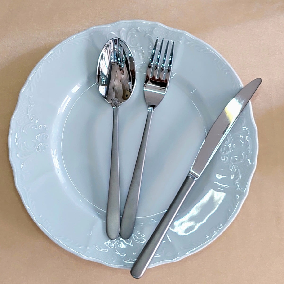 Escajg Berndorf Winipeg Mat za 6 osoba je pravi izraz prefinjene elegancije. Svaki komad seta ukrašen je delikatno matirnom drškom. Ova intrikatna dekoracija na drškama dodaje jedinstven i sofisticiran dodir vašem trpezarijskom iskustvu. Izrađen od visokokvalitetnog nikl-hromiranog čelika 18/10, escajg je ne samo izuzetno izdržljiv, već i otporan na koroziju, što garantuje da će ostati centralni deo vašeg stola dugi niz godina. Pogodan za pranje u mašini za pranje posuđa, što olakšava održavanje.