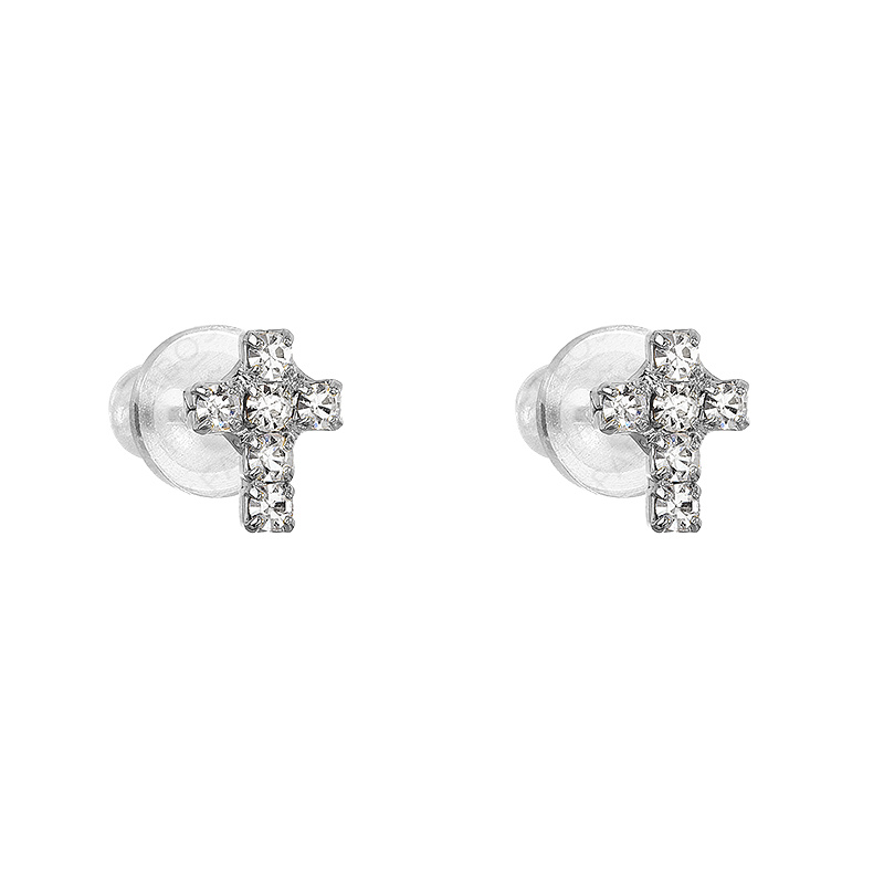 Naušnice Krstić Swarovski. Diskretne, lagane i elegantne – ove ručno izrađene mini minđuše u obliku krsta savršeno se uklapaju u svakodnevni minimalistički stil. Ukrašene providnim Swarovski® kristalima, blistaju suptilnim sjajem koji privlači pažnju, ali ne dominira.